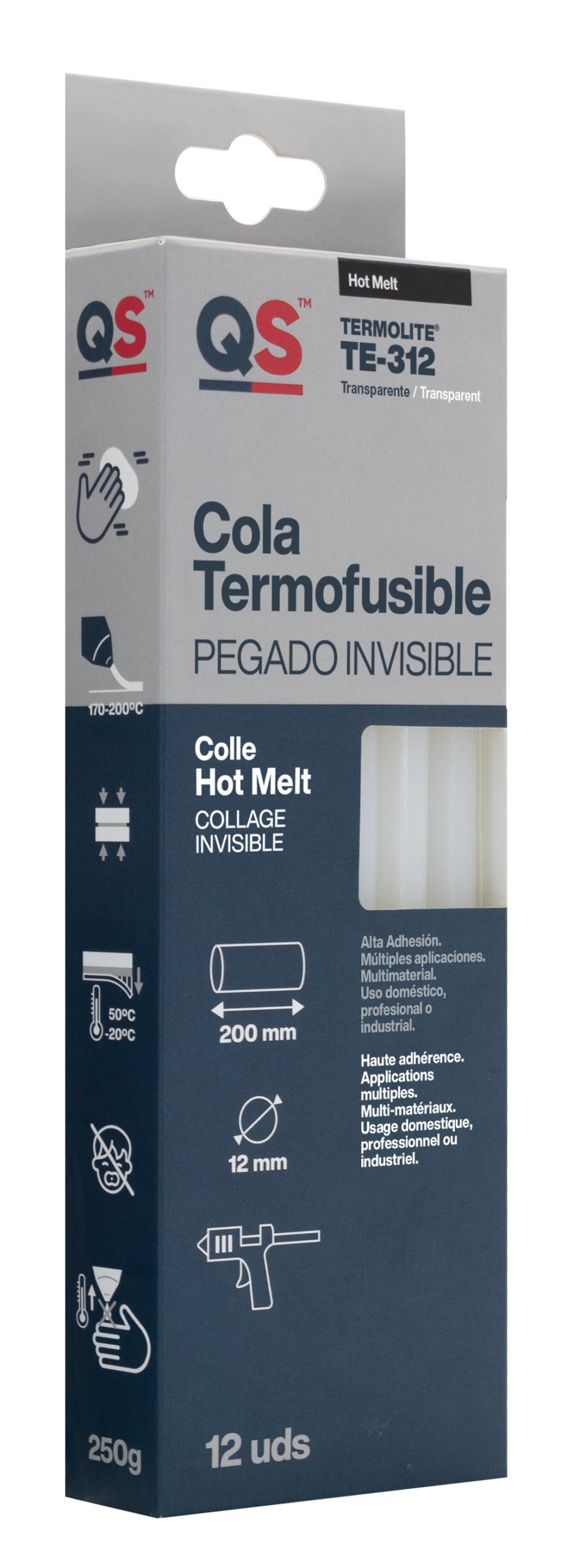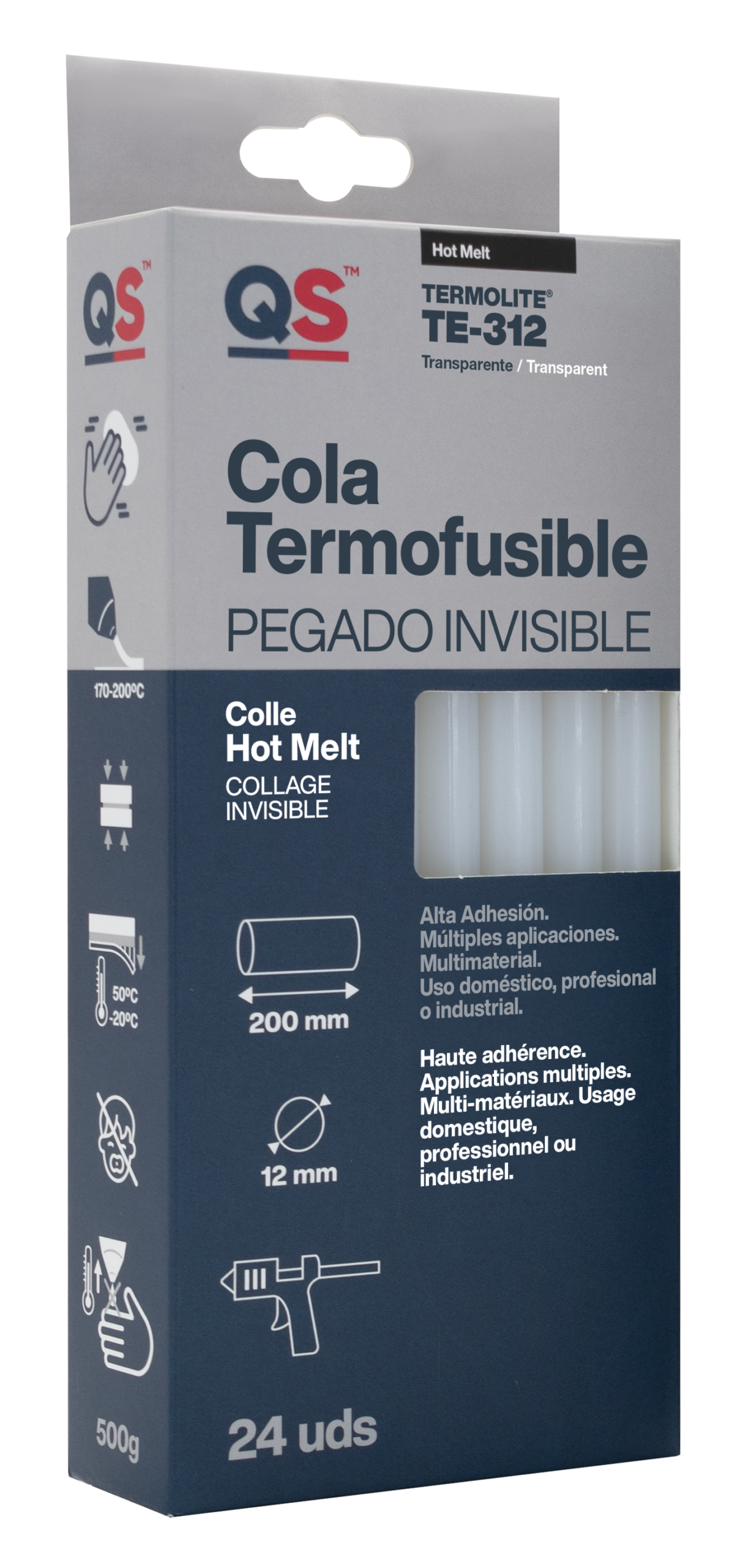Adhesivo termofusible universal transparente, especialmente indicado para el pegado rápido con sistema de aplicación con pistolas de inyección.