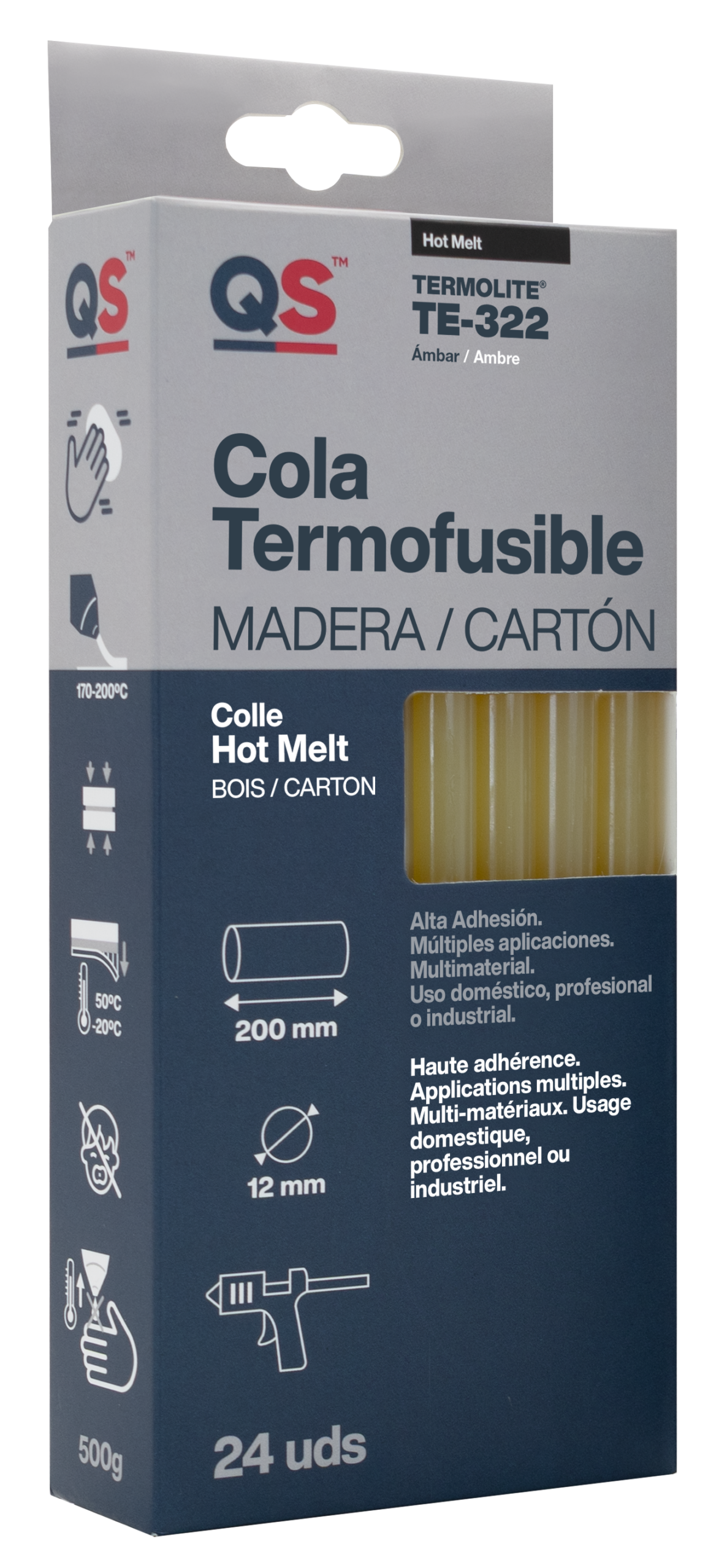 Adhesivo termofusible universal -amarillo-, especialmente indicado para el pegado rápido con sistema de aplicación con pistolas de inyección.